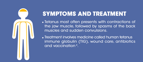 The toxin produced by this anaerobic pathogen results in prolonged muscle contractions. Sometimes called “lockjaw”, tetanus can cause neck and jaw muscles to lock.