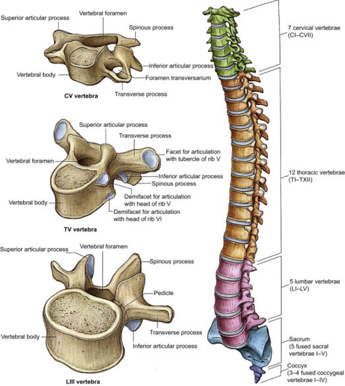 Cervical = 7 Thoracic = 12 Lumbar = 5