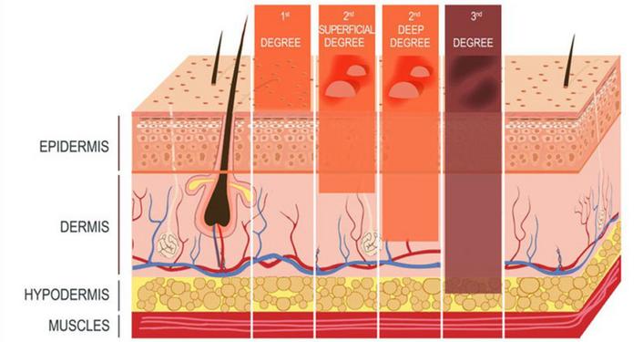 2. second-degree burns affects both the epidermis and a portion of the dermis and cause blistering of the skin