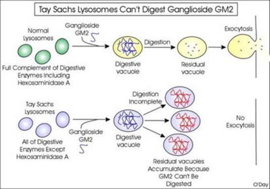 Hex A is necessary for the break down of a fat called GM2 ganglioside found in the brain.