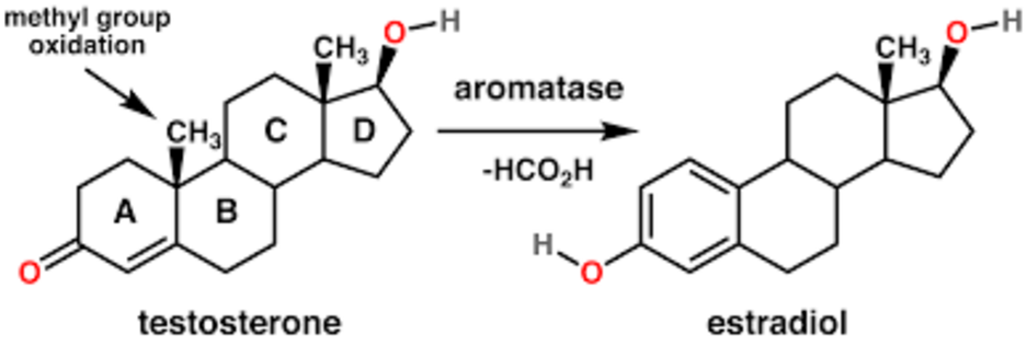 the enzyme aromatase converts testosterone into estradiol.