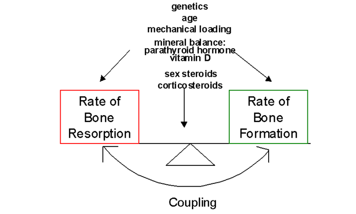 The synthesis and degradation of bone is controlled by the